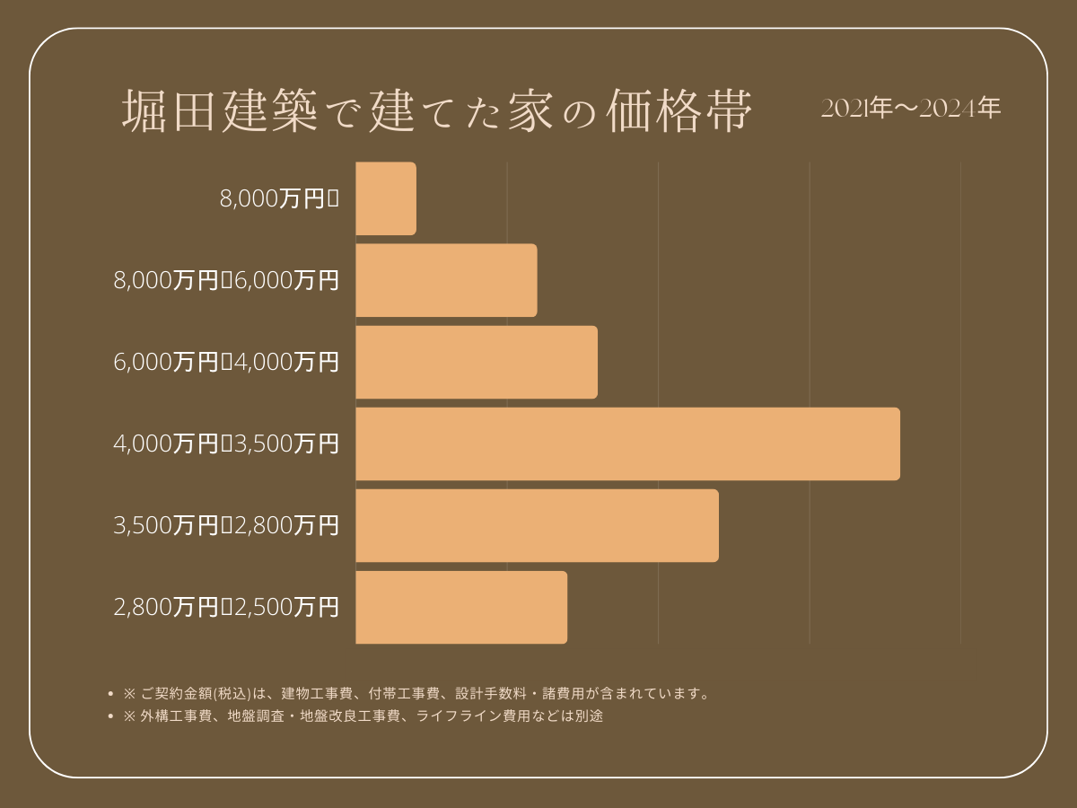 堀田建築で過去3年以内に建てられたお家の価格帯を参考にグラフにしました。